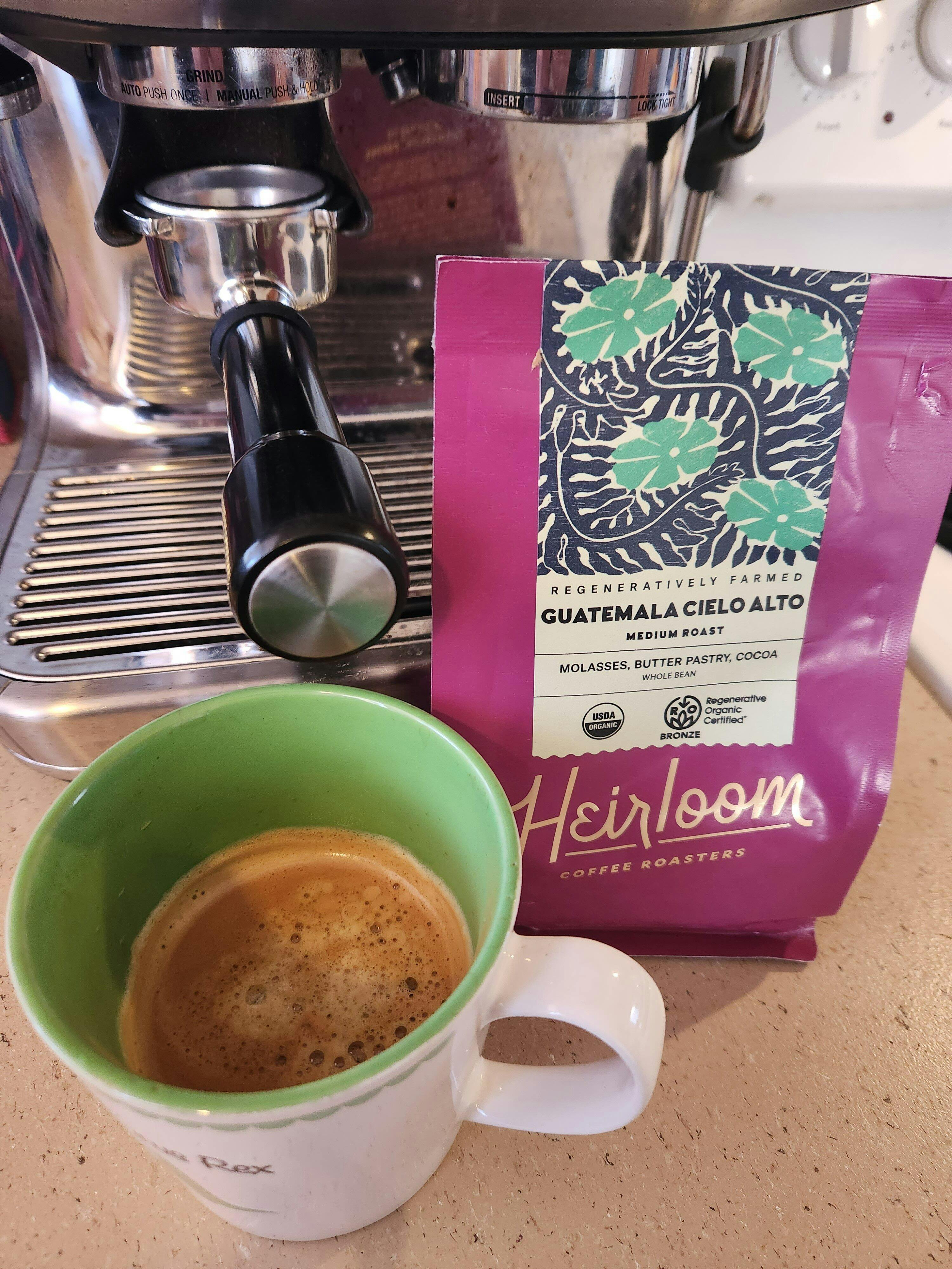 This Gautemala Cielo Alto coffee is soooo good! Perfect cup in the morning. Smooth and delicious. I'm hooked on Heirloom Coffee!